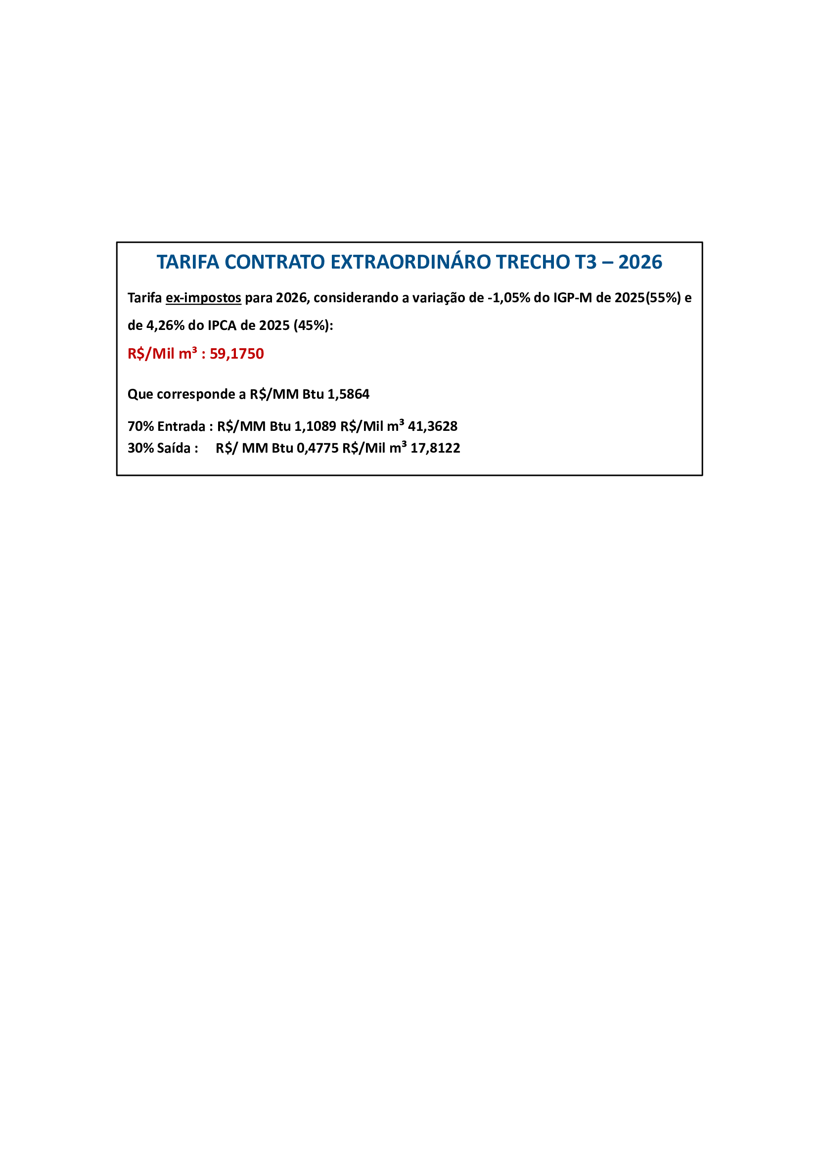 A Transportadora Sulbrasileira de Gás S.A. é uma companhia de capital fechado, constituída em 1999, cuja atividade consiste na prestação de serviço de transporte de gás natural através de gasoduto, de sua propriedade, que interligará as cidades de Uruguaiana e Canoas no Estado do Rio Grande do Sul. Seus atuais acionistas são quatro grandes empresas que constituem um expressivo consórcio internacional: PETRÓLEO BRASILEIRO S/A, COMPANHIA ULTRAGAZ S/A, REPSOL EXPLORAÇÃO BRASIL LTDA e TOTAL GAS AND POWER BRAZIL, cada um com 25% de participação.
